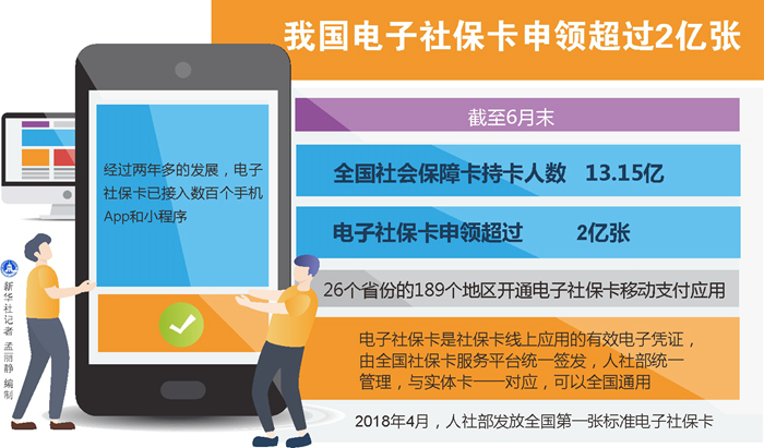 2018年4月,人社部發(fā)放全國第一張標準電子社保卡,為百姓提供手機中的社??ǚ?wù)。經(jīng)過兩年多的發(fā)展,電子社??ㄒ呀尤霐?shù)百個手機App和小程序。