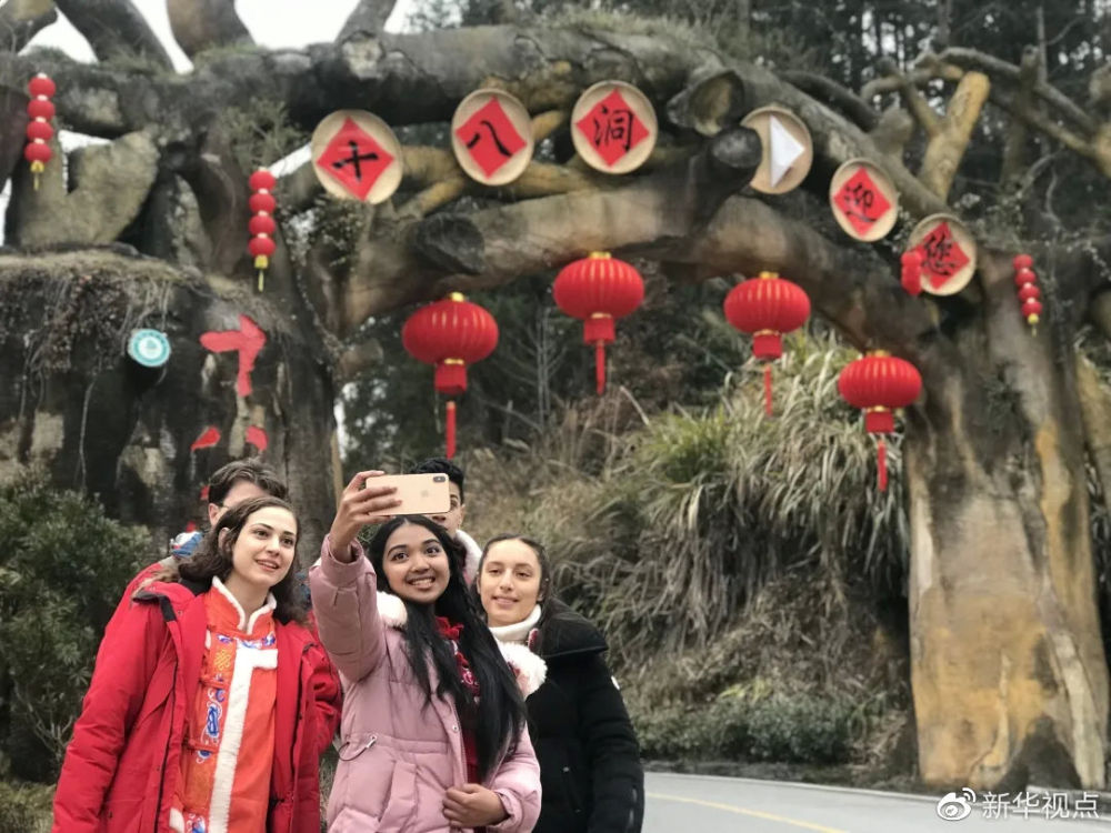 1月18日,多位外國友人受邀來到湘西十八洞村參加十八洞村的小年“村晚”,感受精準(zhǔn)扶貧后的村莊現(xiàn)狀和體驗(yàn)中國傳統(tǒng)節(jié)日氛圍 新華社記者陳思汗 攝