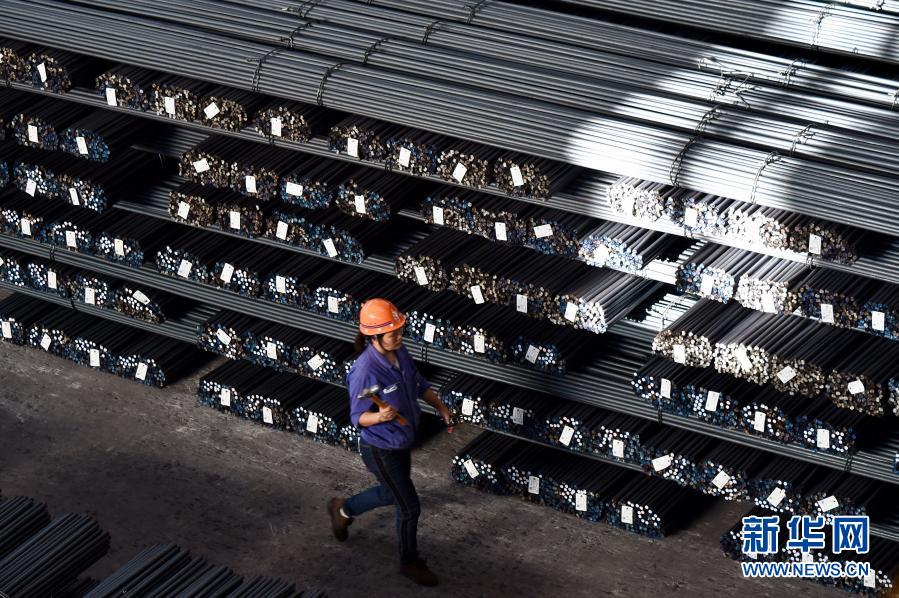 11月17日,福建省三明市三鋼集團(tuán)的工人走過成品堆放區(qū)。新華社記者 姜克紅 攝