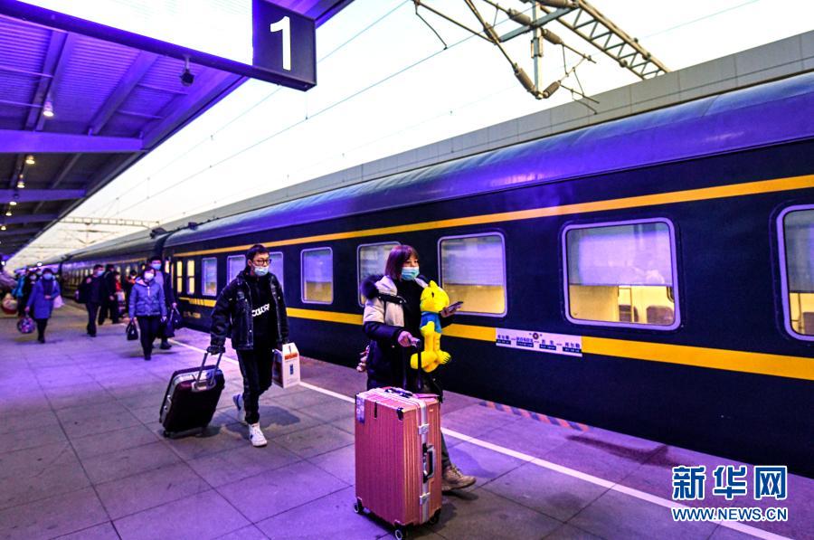 12月9日,在新疆庫(kù)爾勒站,旅客剛剛登上K9756次客運(yùn)列車(chē)。新華社記者 王菲 攝