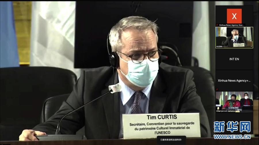 這張12月18日的視頻截圖顯示的是,聯(lián)合國教科文組織《保護(hù)非物質(zhì)文化遺產(chǎn)公約》秘書蒂姆·柯蒂斯在法國巴黎參加線上視頻會(huì)議。新華社發(fā)