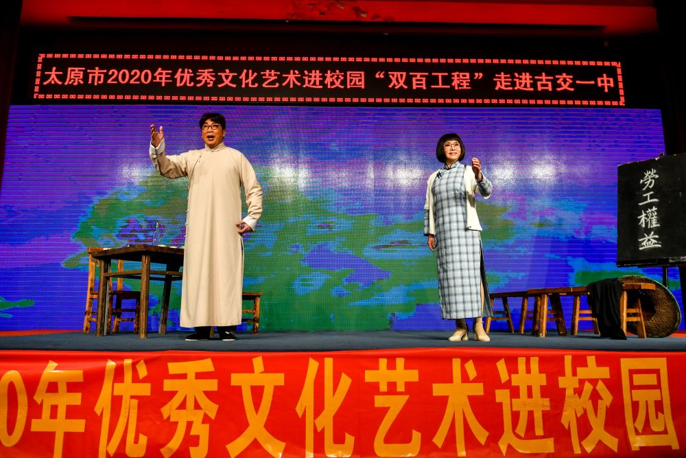 12月17日,武凌云、王春梅夫妻在古交市第一中學(xué)表演晉劇《高君宇與石評(píng)梅》。