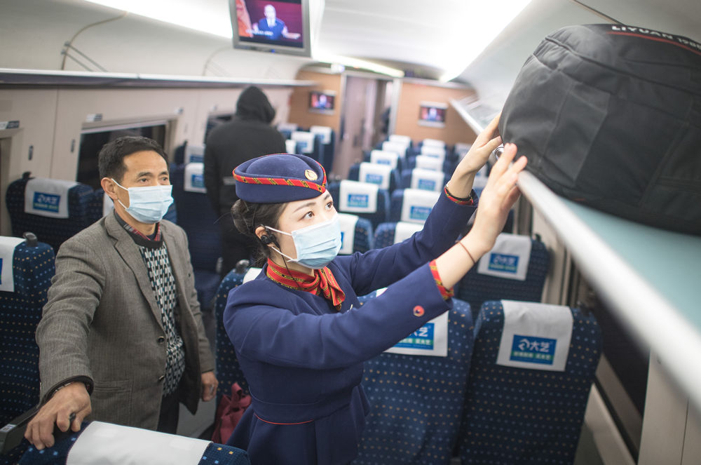 “通知我去值乘G431次列車(chē),有點(diǎn)激動(dòng),終于可以出門(mén)了;也有點(diǎn)忐忑,有點(diǎn)害怕,家人在電話里不停叮囑要做好個(gè)人防護(hù)。上車(chē)前,對(duì)著鏡子,仔細(xì)檢查口罩、護(hù)目鏡和手套?!卑面没貞浾f(shuō),“那趟車(chē)感覺(jué)跟以前很不一樣,車(chē)廂里出奇地安靜,氣氛比較緊張,大家都‘全副武裝’坐著,沒(méi)有人說(shuō)話,也沒(méi)有人吃東西?!?