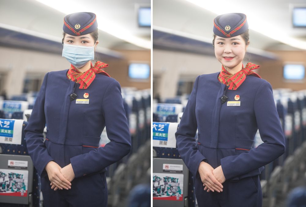 “現(xiàn)在說(shuō)得最多的就是,請(qǐng)乘客戴好口罩、做好防護(hù)。經(jīng)歷了這么大一場(chǎng)疫情,感覺(jué)肩上的擔(dān)子更重了,做好服務(wù)的同時(shí)更要確保每一名乘客的安全?!闭驹谟浾呙媲暗闹袊?guó)鐵路武漢局集團(tuán)有限公司武漢客運(yùn)段高鐵乘務(wù)員艾婷婷20歲剛出頭,言語(yǔ)中顯露出超出同齡人的成熟。
