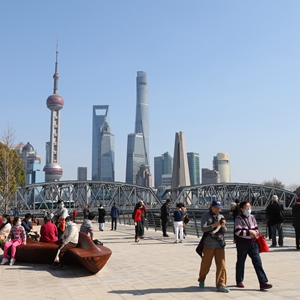 2月21日,人們在上海蘇州河邊漫步休閑。新華社記者 方喆 攝