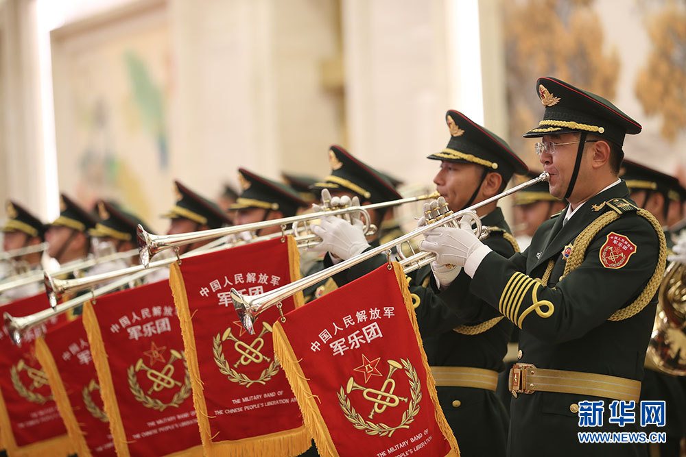 ??? 9月29日上午10時(shí),中華人民共和國(guó)國(guó)家勛章和國(guó)家榮譽(yù)稱(chēng)號(hào)頒授儀式在人民大會(huì)堂隆重舉行。圖為頒授儀式現(xiàn)場(chǎng)的中國(guó)人民解放軍軍樂(lè)團(tuán)。新華網(wǎng) 陳杰 攝
