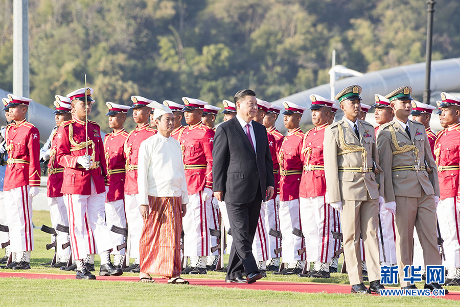 當(dāng)?shù)貢r(shí)間1月17日下午,國家主席習(xí)近平在內(nèi)比都總統(tǒng)府出席緬甸總統(tǒng)溫敏舉行的隆重歡迎儀式。 新華社記者 申宏 攝