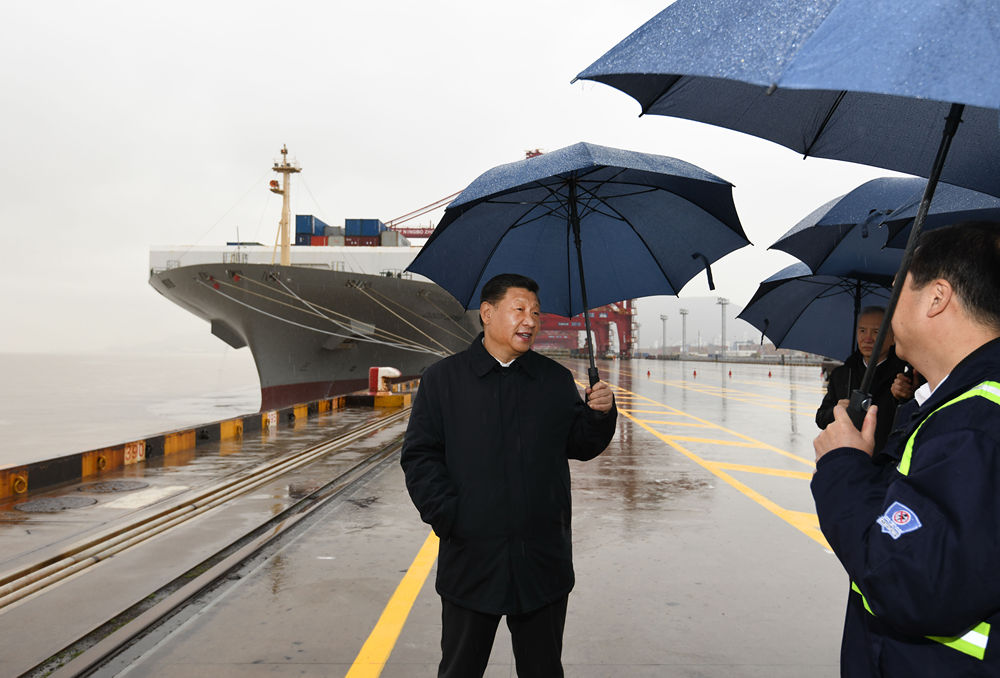 當(dāng)時(shí),總書(shū)記正在穿山港區(qū)2號(hào)集裝箱泊位察看碼頭現(xiàn)場(chǎng)作業(yè)情況。海風(fēng)卷著細(xì)雨,空氣十分清新,周邊環(huán)境也很空曠,人員之間保持著比較大的距離?!?