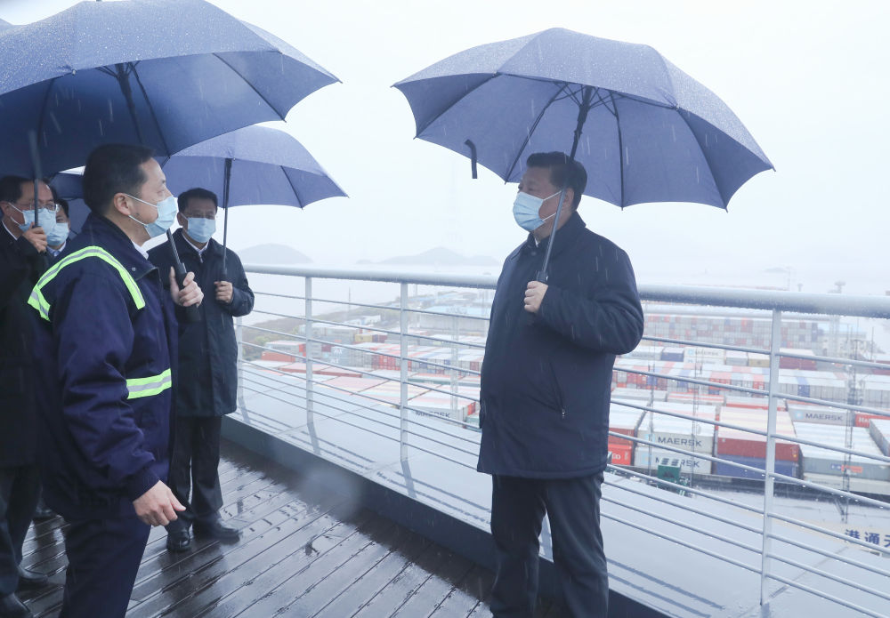 從新華社發(fā)出的現(xiàn)場(chǎng)照片看,總書(shū)記在寧波舟山港穿山港區(qū)碼頭上沒(méi)有佩戴口罩?!?