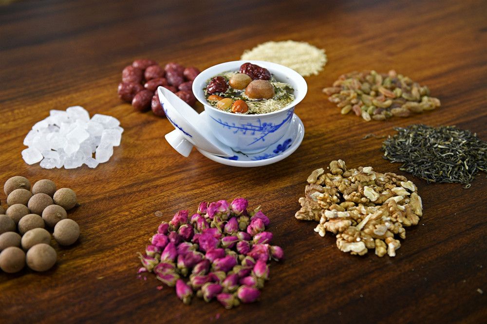 (這是八寶茶的基本原料和飲茶器皿。新華社記者王鵬攝)