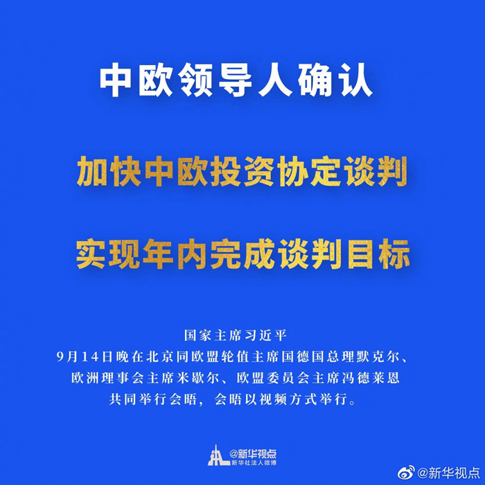 中歐領(lǐng)導人確認,加快中歐投資協(xié)定談判,實現(xiàn)年內(nèi)完成談判的目標。 ????