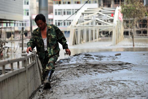 · 武警部隊挖開一寬溝渠 舟曲城區(qū)內積水開始下泄白龍江