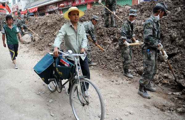 舟曲主要街道實施人工清淤