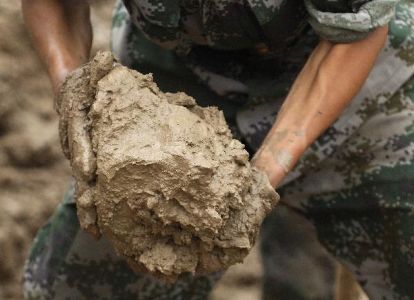 舟曲災(zāi)區(qū)特寫:戰(zhàn)士的手