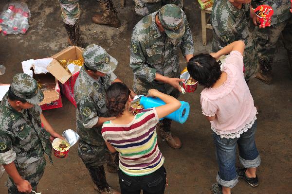 甘肅成縣災(zāi)區(qū)救援人員的午餐