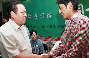 清華大學(xué)校長顧秉林迎接玉樹新生尕瑪朋措
