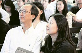 伏明霞梁錦松早早到校排隊(duì)給兒子報(bào)名