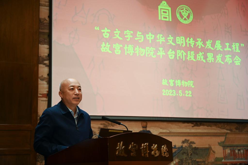 5月22日,故宫博物院院长王旭东在发布会上致辞。