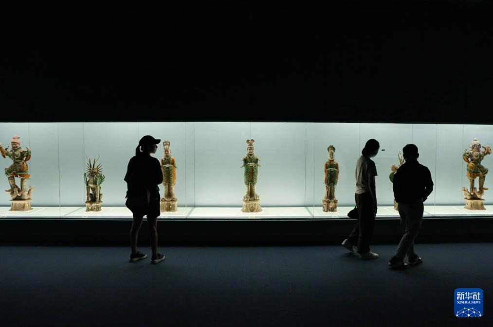 7月14日晚,参观者在上海博物馆的中国古代陶瓷馆观看展品。
