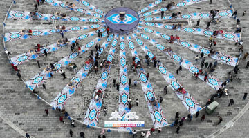 10月30日,龙泉的青瓷和宝剑制作技艺传承人在开幕式上手举薪火。