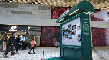 5月10日,参观者在博览会上欣赏漆画作品。