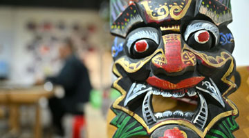 4月24日,人们参观卡塔尔多哈卡塔拉文化村举行的中卡书法交流展。