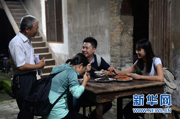 在江西于都縣劉次垣民居內(nèi),三位主播在體驗(yàn)“吃紅軍飯”(9月16日攝)。 10月13日起,新華社為紀(jì)念紅軍長征勝利80周年推出的系列網(wǎng)絡(luò)直播《紅色追尋——三個(gè)年輕人的長征路》精編版視頻將在全國各主要新媒體發(fā)布端和民航、鐵路、公交、戶外大屏等發(fā)布平臺上線。新華社記者 萬象 攝