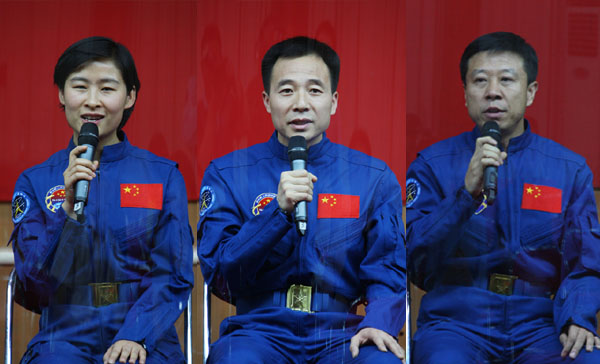 執(zhí)行天宮一號(hào)與神舟九號(hào)載人交會(huì)對(duì)接任務(wù)航天員乘組與記者見面