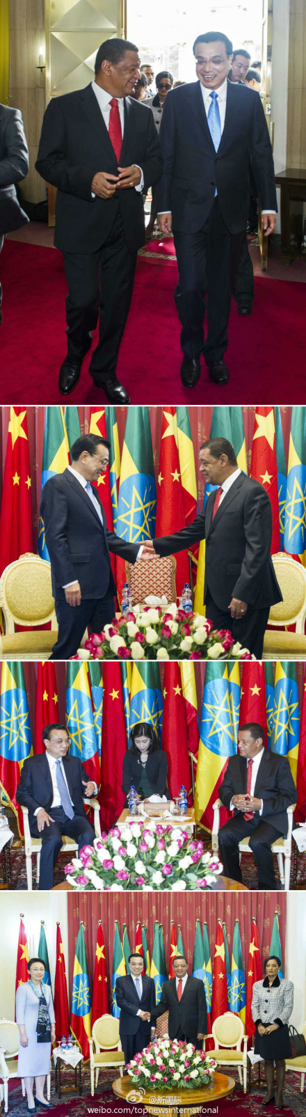 ??? 李克強(qiáng)與夫人程虹6日與埃塞俄比亞總統(tǒng)穆拉圖夫婦在總統(tǒng)官邸國(guó)家宮會(huì)見(jiàn)。李克強(qiáng)說(shuō),我們校友見(jiàn)面格外親切!總統(tǒng)先生在中國(guó)學(xué)習(xí)工作多年,為中埃、中非關(guān)系的發(fā)展作出了重要貢獻(xiàn)。穆拉圖總統(tǒng)曾在北京大學(xué)學(xué)習(xí)十余年,是李克強(qiáng)總理的校友,也是“中國(guó)通”。