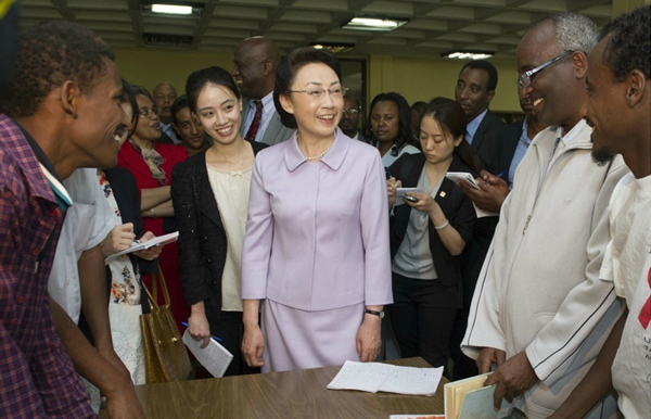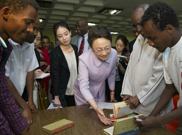 ????新華網(wǎng)北京5月6日電 據(jù)新華社“新國際”微博報(bào)道,李克強(qiáng)總理夫人程虹5日在埃塞俄比亞總理夫人羅曼·塔斯法耶的陪同下參觀了亞的斯亞貝巴大學(xué),觀摩漢語授課,與學(xué)生們交流,觀看學(xué)生們的中國文化才藝展示,還捐贈(zèng)了書籍、計(jì)算機(jī)等物品。程虹說,你們是文化的紐帶,感謝你們對(duì)中國人民的情誼。你們對(duì)中國文化的熱愛感動(dòng)了我,也會(huì)感動(dòng)中國人民。