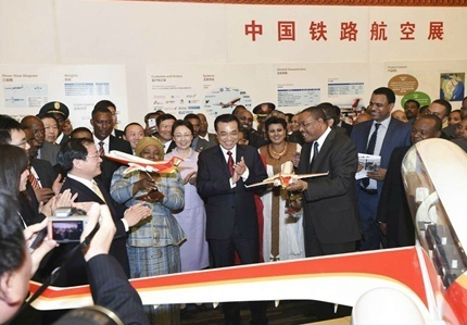 ????新華網(wǎng)北京5月6日電 據(jù)新華社“新國際”微博報道,中國鐵路航空展5日在非盟會議中心舉行,李克強總理及夫人程虹、埃塞俄比亞總理海爾馬里亞姆夫婦、非盟委員會主席祖馬等共同參觀。李克強說,這些裝備是中國自主研發(fā),適合非洲國家需求,中國愿同非洲國家分享技術(shù)、培訓(xùn)、管理經(jīng)驗,幫助非洲實現(xiàn)世紀夢想。