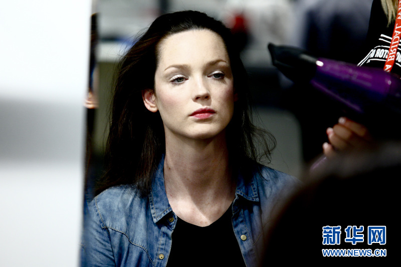 場外正在準備登臺展示婚紗的模特。