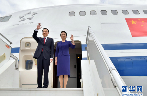??? 5月6日,中國(guó)國(guó)務(wù)院總理李克強(qiáng)在圓滿結(jié)束對(duì)埃塞俄比亞和非盟總部的正式訪問后離開亞的斯亞貝巴。埃塞俄比亞總理海爾馬里亞姆夫婦在機(jī)場(chǎng)為李克強(qiáng)夫婦舉行隆重的歡送儀式。這是李克強(qiáng)總理和夫人程虹向送行人群揮手告別。新華社記者 李濤 攝