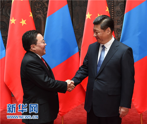 習(xí)近平強(qiáng)調(diào),我十分關(guān)心和高度重視中蒙關(guān)系。兩國領(lǐng)導(dǎo)人要保持密切交往和戰(zhàn)略溝通,實(shí)實(shí)在在推進(jìn)兩國合作。兩國立法機(jī)構(gòu)、政黨、軍隊(duì)也要加強(qiáng)交往。中蒙經(jīng)濟(jì)互補(bǔ)性強(qiáng)。中方開展對(duì)蒙合作堅(jiān)持互利雙贏原則,不搞我贏你輸、我多你少。中方愿本著礦產(chǎn)資源開發(fā)、基礎(chǔ)設(shè)施建設(shè)、金融合作“三位一體、統(tǒng)籌推進(jìn)”原則,以互聯(lián)互通建設(shè)為優(yōu)先方向,以建設(shè)絲綢之路經(jīng)濟(jì)帶為契機(jī),拓展兩國合作,鼓勵(lì)有實(shí)力的中國企業(yè)赴蒙投資興業(yè)。中方支持蒙方積極參與國際和地區(qū)事務(wù),愿同蒙方加強(qiáng)在聯(lián)合國、上海合作組織等框架內(nèi)合作。
