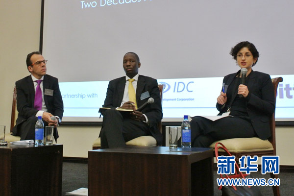 ????三人從左至右,前沿咨詢公司(Frontier Advisory)CEO馬丁博士,國(guó)家規(guī)劃委員會(huì)秘書(shū)處代理負(fù)責(zé)人馬赦,奧特曼博士(Miriam Altman)。新華社記者 郭興華 攝