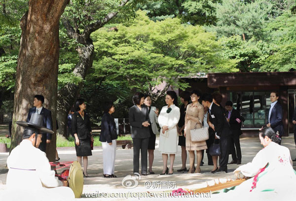 ???? 新華網北京7月3日電? 據新華社“新國際”微博報道,習近平主席夫人彭麗媛3日下午在韓國官員陪同下參觀被列為世界文化遺產的昌德宮,了解宮殿建筑歷史、音樂傳承等情況,并欣賞韓國傳統(tǒng)樂器伽倻琴散調表演,對藝術家的精彩演出表示高度贊賞。彭麗媛說,中韓友誼源遠流長,歡迎韓國朋友多到中國參觀訪問。