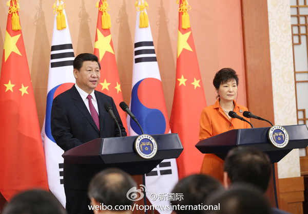??? 新華網(wǎng)北京7月4日電 據(jù)新華社“新國際”微博報(bào)道,習(xí)近平主席3日在同韓國總統(tǒng)樸槿惠會(huì)談后共見記者時(shí)說,我和樸槿惠總統(tǒng)都認(rèn)為,中韓兩國應(yīng)一道努力,成為實(shí)現(xiàn)共同發(fā)展的伙伴、致力地區(qū)和平的伙伴、攜手振興亞洲的伙伴、促進(jìn)世界繁榮的伙伴。