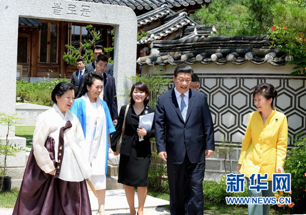 ????樸槿惠表示,昨天我們談得很好,也很深入,達成了一系列重要共識。我認為習近平主席這次對韓國的重要訪問已經(jīng)取得了成功。韓中兩國文化相近,人文相親,兩國民間相互有很強的認同感,這為兩國關系持續(xù)深入發(fā)展奠定了堅實基礎。我相信韓中關系在各領域將不斷得到深化和發(fā)展。樸槿惠表示,明年是世界反法西斯戰(zhàn)爭勝利70周年和朝鮮半島光復70周年,這對韓中兩國、對亞洲各國都將是很有意義的一年。韓中有相似的歷史遭遇,兩國可以就有關問題開展共同研究。