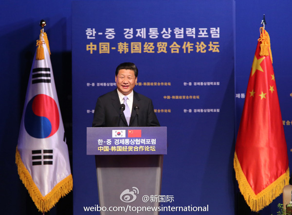 ????新華網(wǎng)北京7月4日電 據(jù)新華社“新國際”微博報道,習(xí)近平指出,中國對韓投資尚處于起步,“小荷才露尖尖角”,但只要精耕細(xì)作,一定會蓮香十里飄。中國人民銀行和韓國銀行簽訂了在首爾建立人民幣清算安排的備忘錄,確定中國交通銀行擔(dān)任首爾人民幣清算銀行,這將有利于促進中韓兩國貿(mào)易、投資自由化便利化。