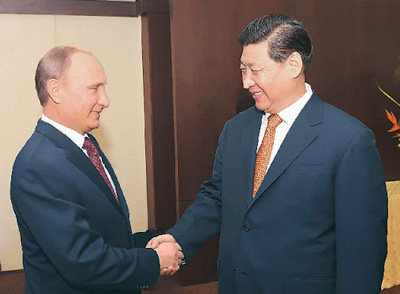 習(xí)近平表示,下一步,中俄雙方要繼續(xù)加大相互政治支持,提高合作深度和廣度,更多開展戰(zhàn)略性大項目聯(lián)合研究開發(fā)、聯(lián)合推廣應(yīng)用、聯(lián)合生產(chǎn)制造,在軍事、安全等領(lǐng)域多采取務(wù)實聯(lián)合行動,在人文領(lǐng)域鼓勵和支持聯(lián)合辦學(xué)、共同發(fā)展文化。雙方要在國際事務(wù)中開展更多共同行動,攜手推動金磚國家合作,提升話語權(quán)和影響力,完善全球治理,推動國際關(guān)系民主化,促進世界和平與發(fā)展。