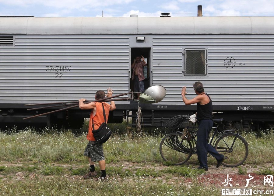 當(dāng)?shù)貢r間2014年7月20日,烏克蘭頓涅茨克Torez,馬航墜機(jī)遇難乘客遺體被裝上列車?yán)洳剀噹麑⒈贿\走。載有部分遺體的火車從距空難現(xiàn)場不遠(yuǎn)的烏克蘭托列茲市出發(fā),前往頓涅茨克市?;疖囯x站前,身處空難現(xiàn)場的歐洲安全與合作組織(歐安組織)代表檢查了運載遺體的5節(jié)冷藏車廂。