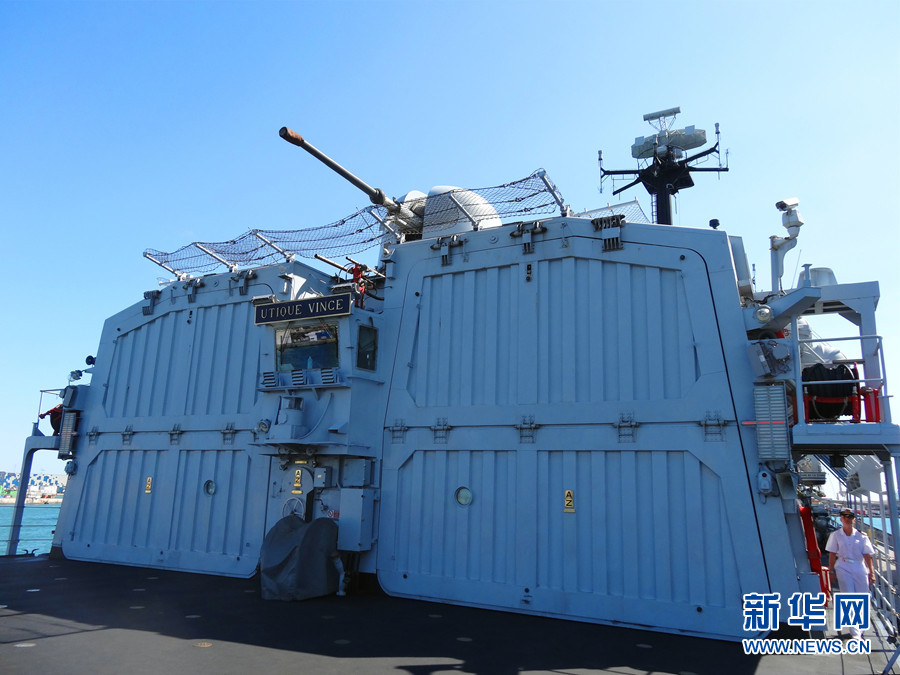 ????“路易吉·杜蘭德·德拉佩訥號”驅(qū)逐艦艦上設(shè)施。新華網(wǎng)記者 周喆 攝