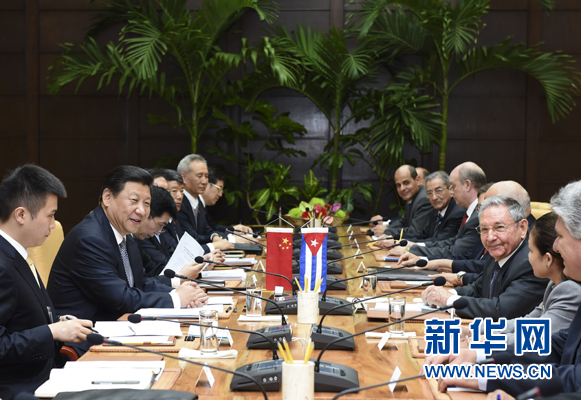 ????勞爾·卡斯特羅熱烈歡迎習(xí)近平訪問古巴,并愉快憶及他以往訪華情景,表示兩國關(guān)系正處在歷史最好時(shí)期,兩國合作擴(kuò)大到各領(lǐng)域。我期待著同習(xí)近平主席就發(fā)展兩國關(guān)系深入交換意見,并見證一系列重要合作協(xié)議簽署,顯示我們加強(qiáng)合作的共同意愿。