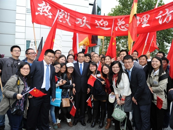 克強(qiáng)總理問了問孩子們的年齡、年級(jí),又跟學(xué)校老師聊起孩子們的學(xué)習(xí)情況,與大家一起合影,鼓勵(lì)孩子們“做中德交往的橋梁”。