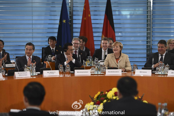 ????新華網(wǎng)北京10月10日電 據(jù)新華社“新國際”微博報道,“Happy Birthday!”在第三輪中德政府磋商會上,德國總理默克爾開場先向中方農(nóng)業(yè)部長祝福生日!她說:雖然你不能和家人一起過,但我們會讓你過個愉快的生日。李克強(qiáng)總理提議大家舉水杯為這特別的生日送上祝福,還風(fēng)趣地說祝福農(nóng)業(yè)部長,意味著有保障糧食安全的基礎(chǔ)。