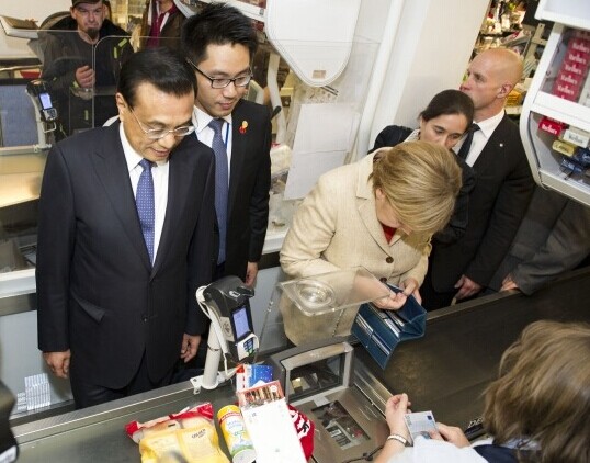 結(jié)賬時,默克爾讓李克強(qiáng)總理先走,自己停下來付錢,隨后轉(zhuǎn)身與他一起離開。兩位總理結(jié)束了短暫的超市之行,到酒店準(zhǔn)備出席第七屆中德經(jīng)濟(jì)技術(shù)合作論壇。