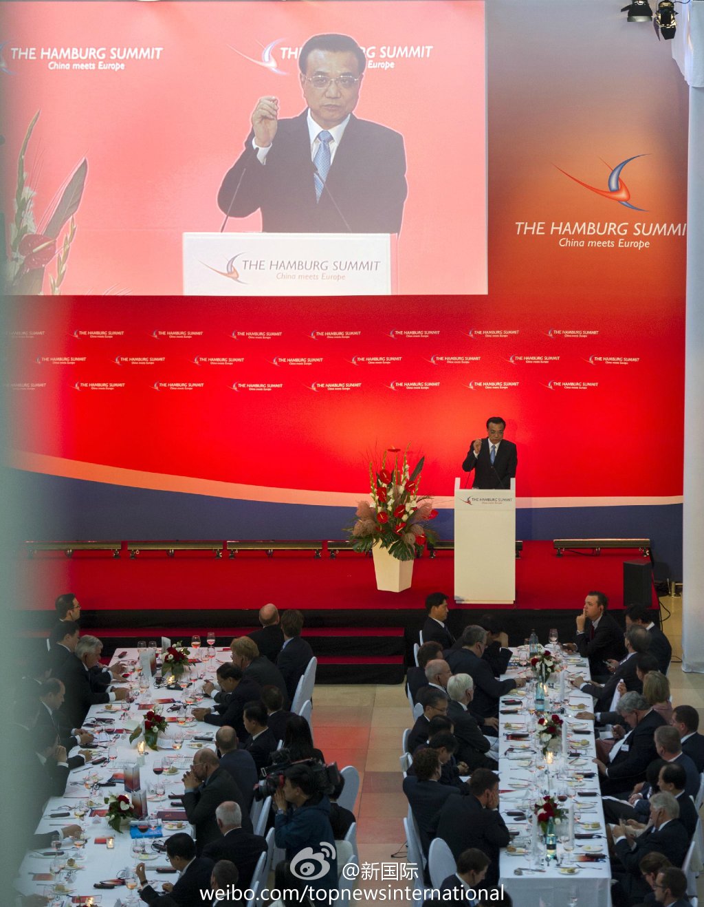 ????新華網北京10月12日電 據新華社“新國際”微博報道,國務院總理李克強11日在中歐論壇漢堡峰會上發(fā)表演講說,中國是最大的新興市場國家,歐盟是最大的發(fā)達經濟體,“最大”與“最大”交融、一切都有可能,“新興”與“發(fā)達”攜手、優(yōu)勢就會倍增,中歐在新興和發(fā)達經濟體合作中可以成為典范。