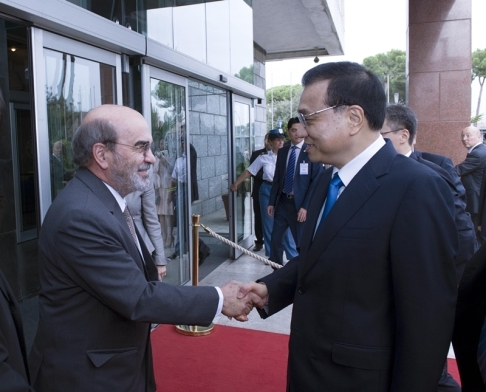 ????糧農(nóng)組織總干事分管中國事務(wù)的秘書李軒說:“數(shù)月前,我們就向李克強(qiáng)總理發(fā)出了邀請(qǐng)??偢墒侣犝f李克強(qiáng)總理要訪問意大利并出席亞歐峰會(huì),立即邀請(qǐng)李克強(qiáng)總理前來糧農(nóng)組織總部訪問,李克強(qiáng)總理欣然同意了。”