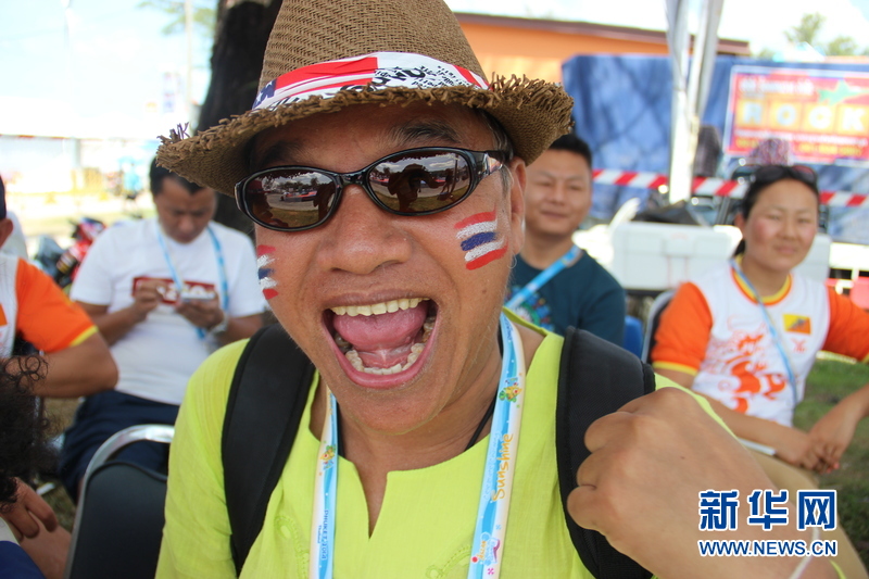 ??? 11月16日,泰國民眾為泰國運(yùn)動健兒加油。中國體育代表團(tuán)16日在泰國普吉舉行的第四屆亞洲沙灘運(yùn)動會上勇奪2枚金牌和2枚銅牌。當(dāng)天比賽全部結(jié)束時(shí),中國隊(duì)以3金2銀5銅的成績暫列獎牌榜第五,東道主泰國隊(duì)以9金11銀12銅的成績暫列金牌榜和獎牌榜第一。新華社發(fā)(塔納攝)