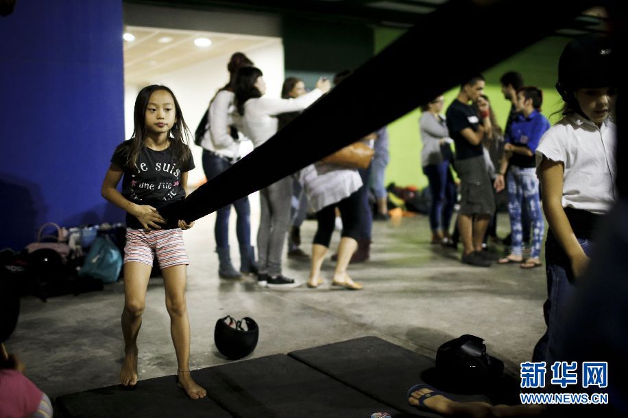 ????訓(xùn)練開始前,Jana做準(zhǔn)備。她正在將一塊黑布纏在腰上。新華社巴塞羅那分社攝影師Pau Barrena 攝